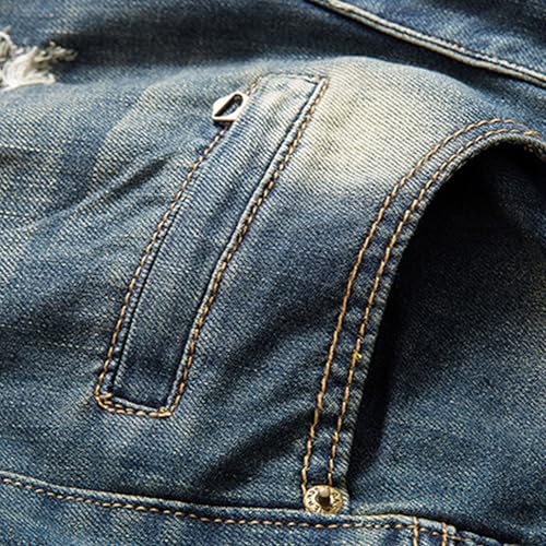 More information about Men's Casual Distressed Biker Jeans Slim Fit Ripped Fashion Denim Pants Stratight Leg Regular Streetwear Jeans