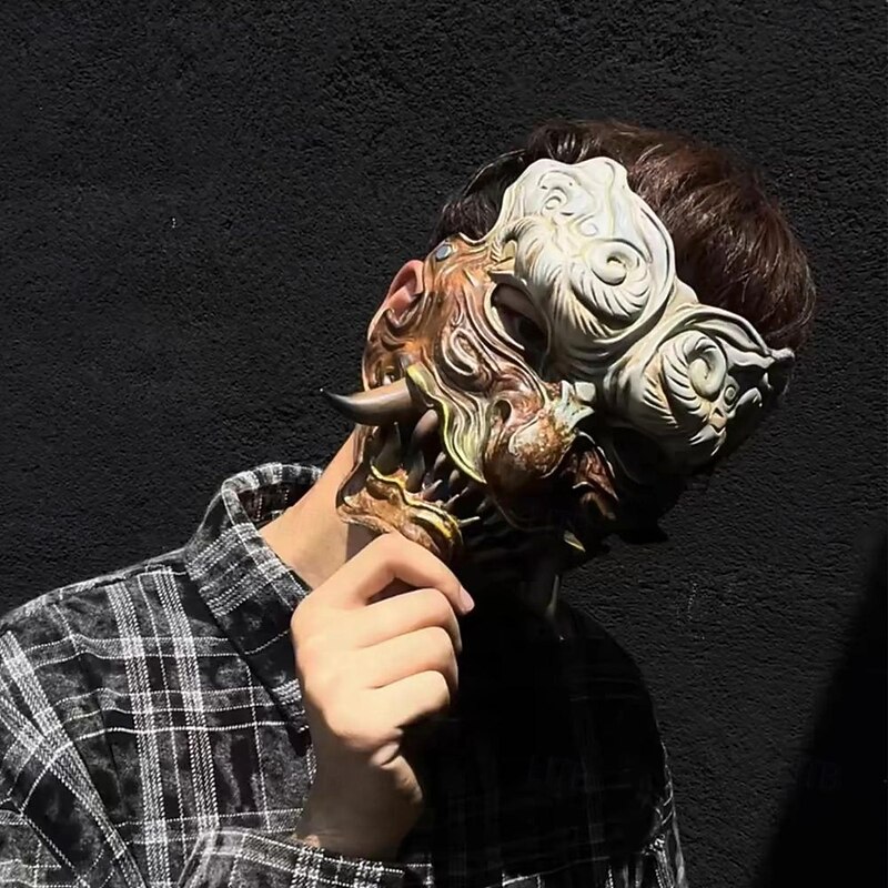 Highlights [Fabric] : Crafted from high-quality latex, this striking mask offers durability and a realistic appearance. The material ensures the mask is both resilient and comfortable for extended wear, enhancing its life-like look with a metallic finish. [Design] : The mask features an intricate design inspired by the legendary character Sun Wukong, complete with ornate carvings and fierce facial features like sharp fangs and bold expressions. Its earthy tones and subtle highlights give it a captivating three-dimensional effect, making it an impressive piece for any themed event. [Design Highlights] : This full-face mask is designed with an adjustable strap that provides a secure and comfortable fit for various head sizes, allowing for an immersive experience at any event. Its elaborate details and metallic finish give it an authentic and striking presence. [Occasions] : Ideal for Halloween parties, carnival events, cosplay conventions, and other themed celebrations. Whether stepping into a fantasy role or adding mystique to your ensemble, this mask is a standout choice for various festive occasions. [Size Guidelines] : Designed for adults, this unisex mask ensures a comfortable fit for all with its adjustable strap, accommodating different head sizes easily.