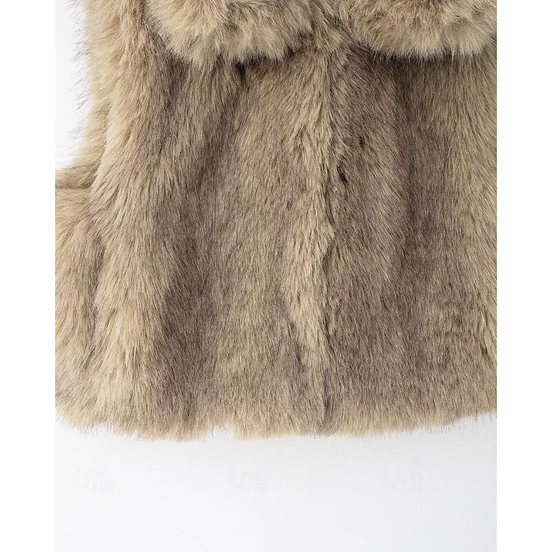 Women's Vest Faux Fur Coat Comfortable Furs & Leathers Fashion Casual Plain Vacation Street Casual Daily Wear Short Regular Turndown Regular Fit Sleeveless Outerwear Brown Fall Winter 11