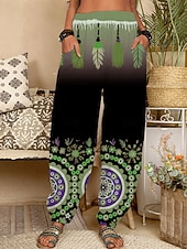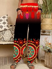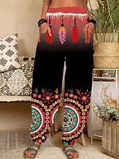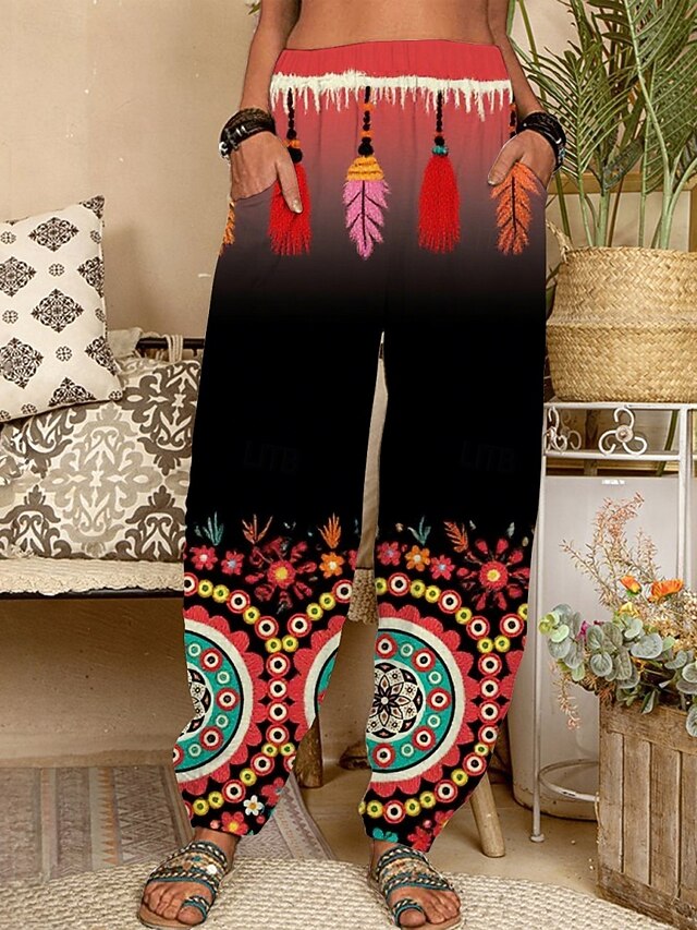 More information about Women's Chinos Pants Trousers Vintage Ethnic Style Long High Waist Graphic Feather Pocket Elastic Waist Printing Breathability Soft Micro-elastic Vacation Street Daily Wear Yellow Red Fuchsia Green