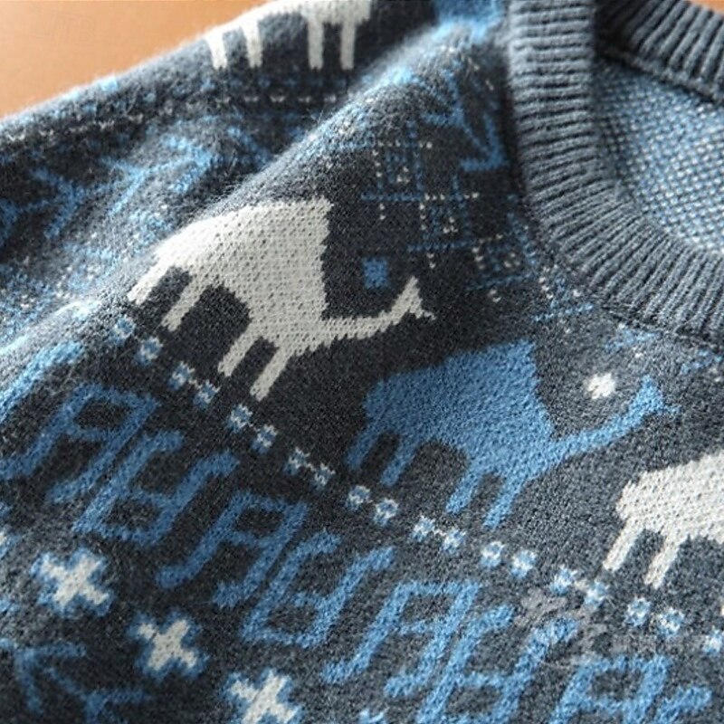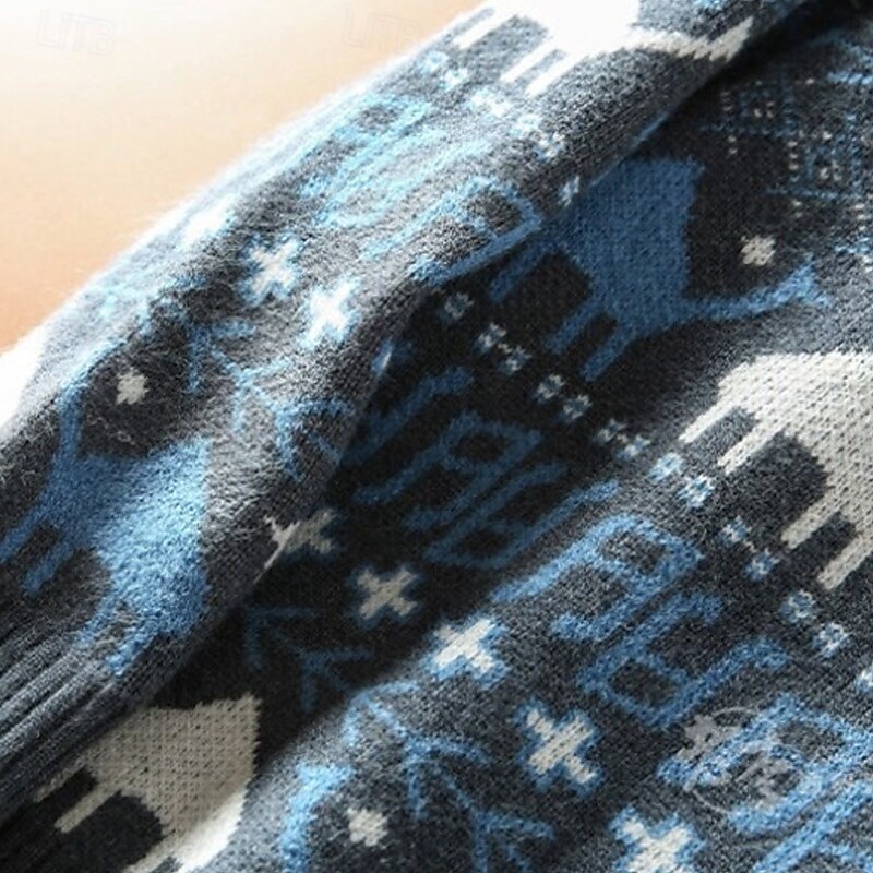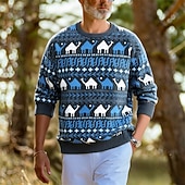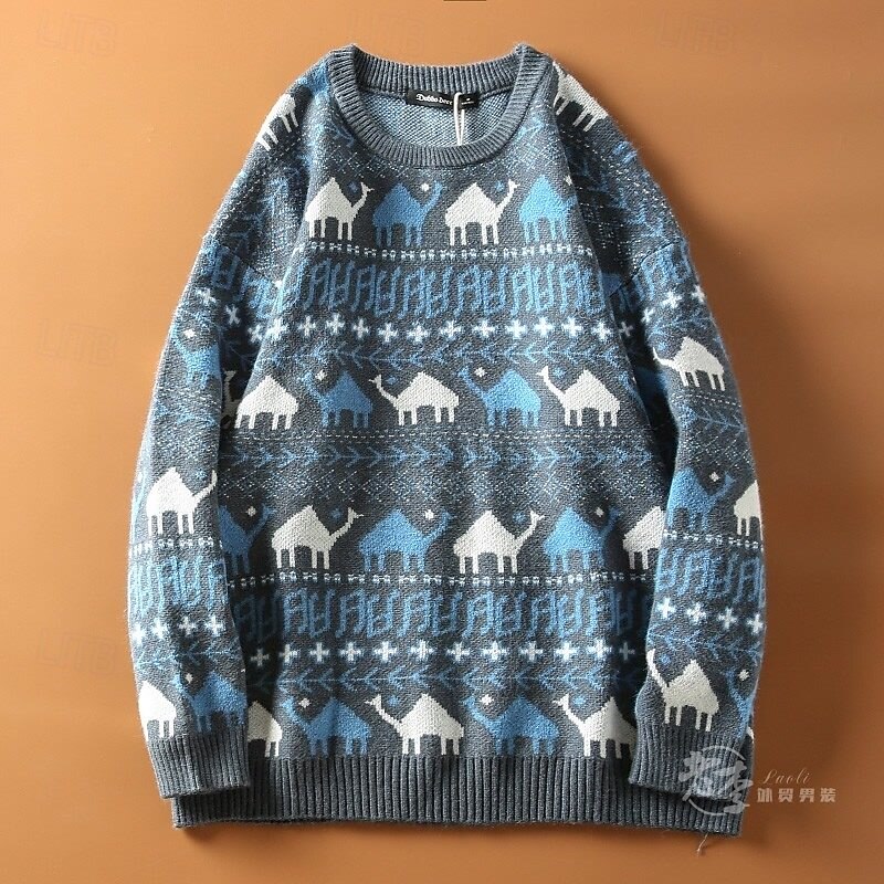 More information about Men's Pullover Sweater Jumper Knit Sweater Ribbed Knit Regular Tops Knitted Animal Crew Neck Basic Ethnic Vacation Daily Wear Clothing Apparel Fall Winter Camel Blue M L XL