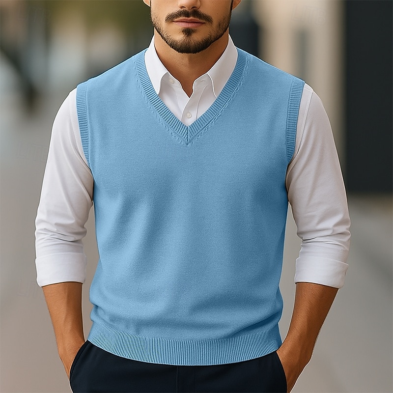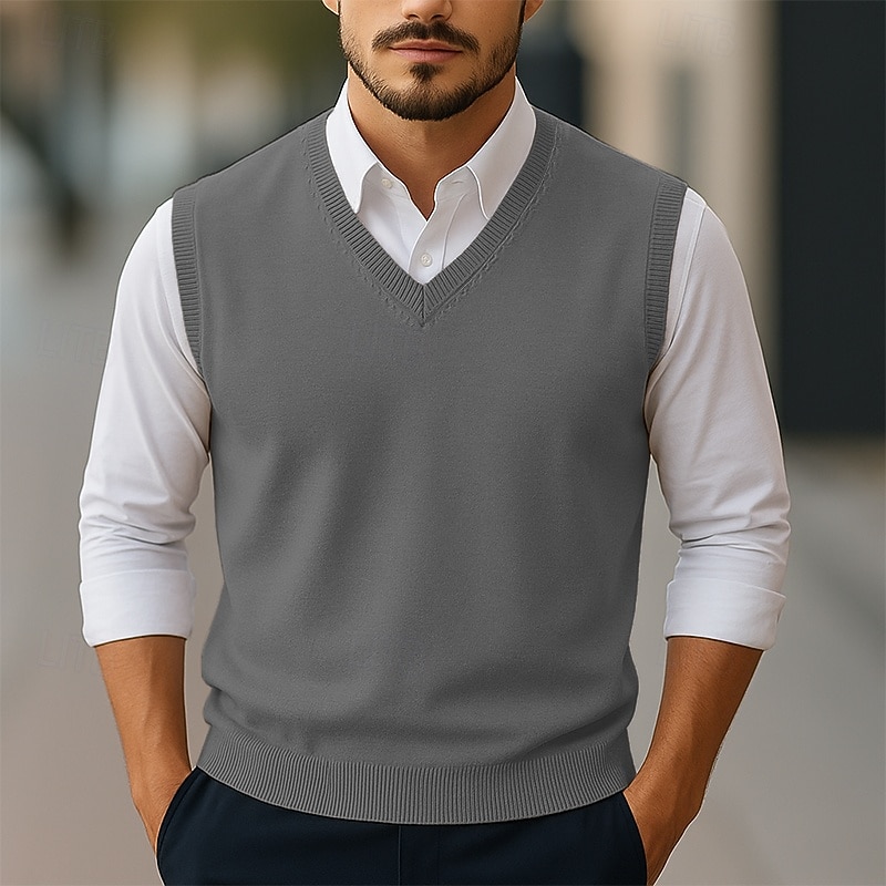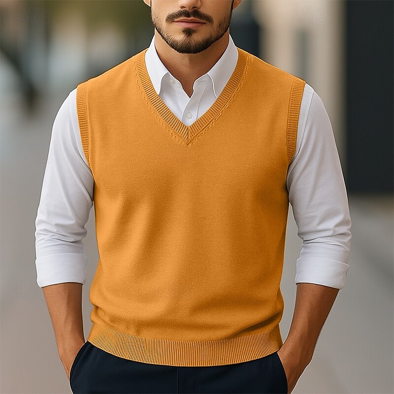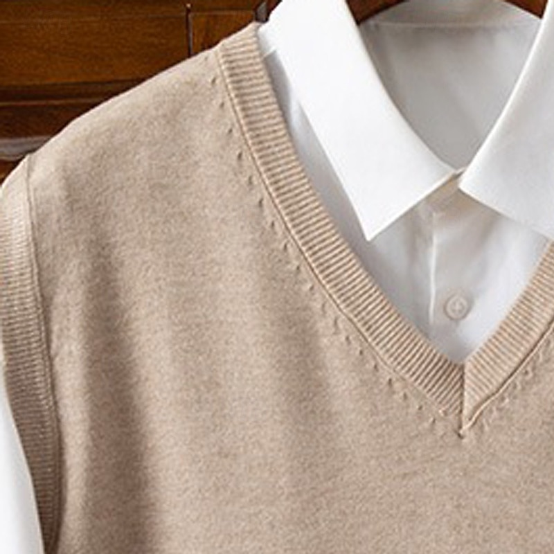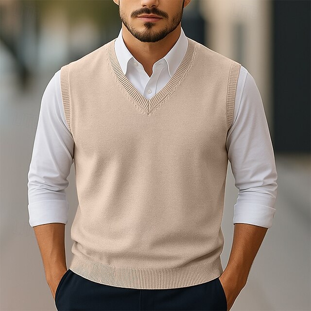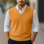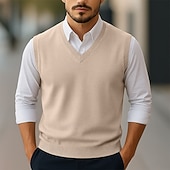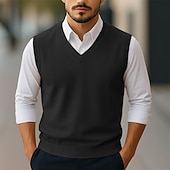 More information about Men's Sweater Sweater Vest Pullover Sweater Jumper Ribbed Knit Regular Tops Knitted Slim Fit Plain V Neck Knitwear Contemporary Casual Daily Wear Clothing Apparel Winter Spring & Fall Camel Black S