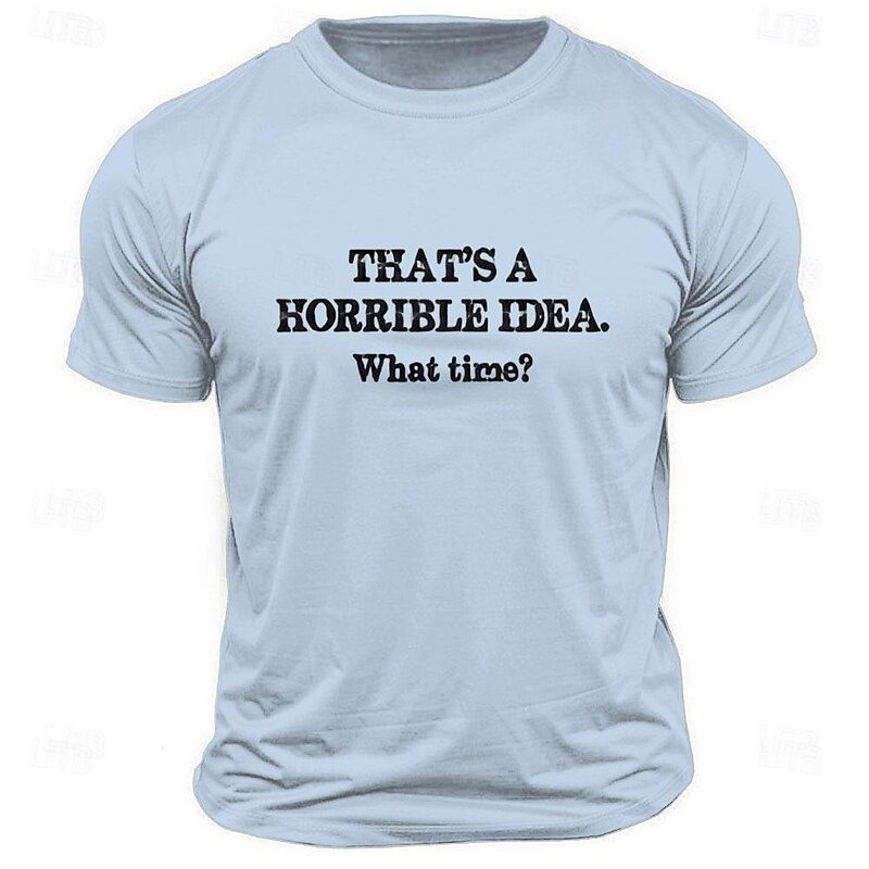 Men's Funny Graphic T-Shirt with "That's a Horrible Idea. What Time?" Sarcastic Lifestyle Quote 6