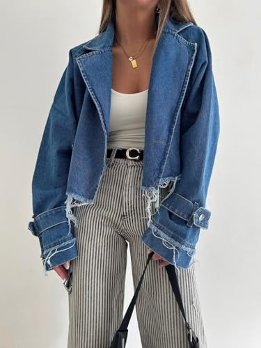• 【STYLE】button down jean jacket women/ denim slim fit short jackets for women/ notched lapel cropped denim trench coat women/ long sleeve denim jacket women/ belted jean jacket for women/ fringed raw hem denim jackets for women/ cropped denim coat women/ 2025 fall clothes for women