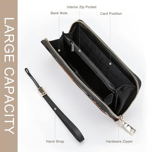 • Large & Organized Capacity: Measures 4.1 x 7.9 inches. Designed with multiple card slots, a spacious main compartment, and a secure zip-around closure, this long wallet comfortably holds cards, cash, coins, and even your smartphone. Perfect for daily use or special occasions!