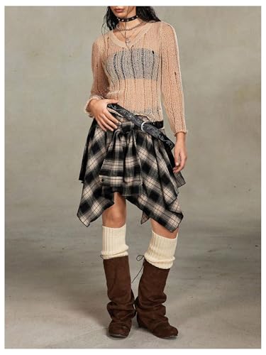 HOT ! Verdusa Women's Y2k Goth Grunge Plaid Skirts Tie Vintage Asymmetrical Flowy Pleated Mini Skater Skirt