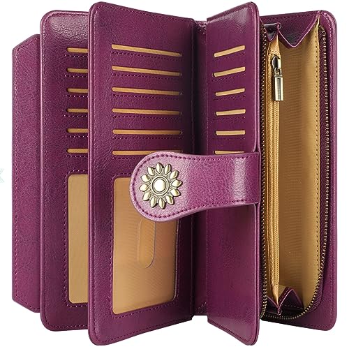 Lavemi Womens Genuine Leather Large Capacity RFID Blocking Wallets Clutch Card Holder With Wristlet Strap 1