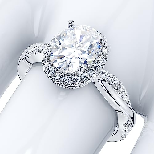 THELANDA Sterling Silver Petite Twisted Vine 1.5CT Oval Cut Genuine Moissanite Halo Engagement Ring Promise Ring 6
