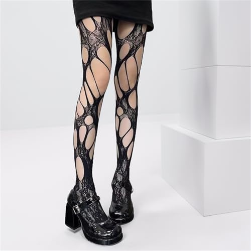 More information about HeiBai Xiong Rave Lace Tights Women Goth Ripped Sheer Mesh Cutout Distressed See Through Punk Vintage