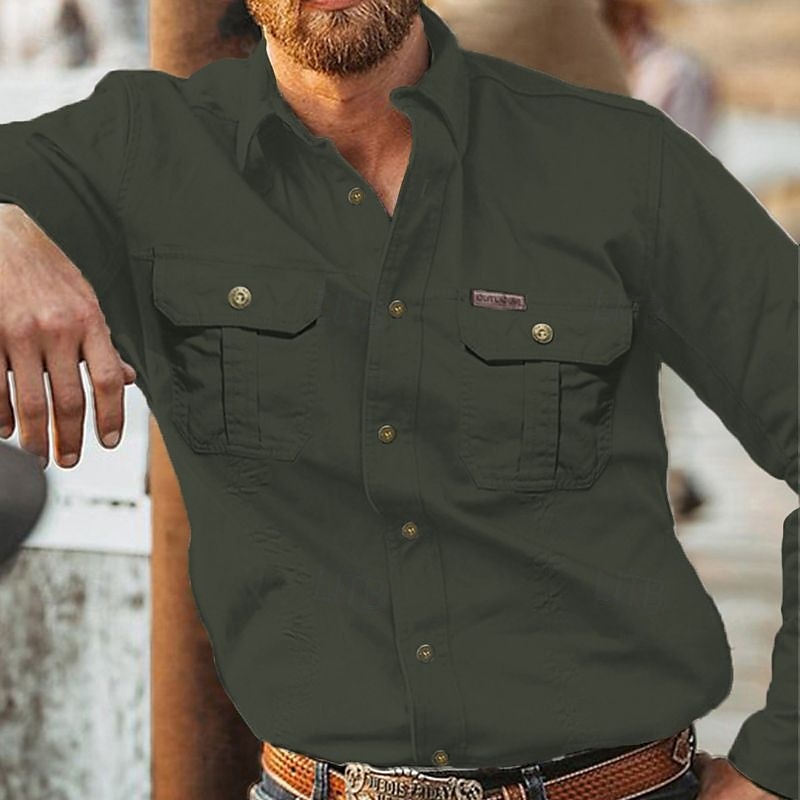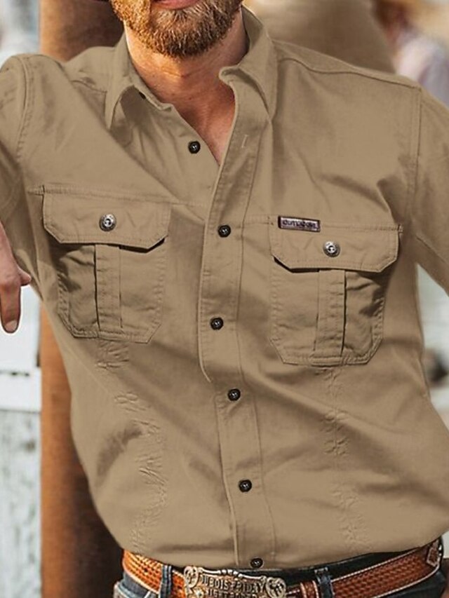 HOT ! Men's Workwear Shirts Work Shirt Cargo Shirt Navy Blue khaki Light Grey Army Green Long Sleeve Plain Turndown Vacation Street Front Pocket Clothing Apparel Cotton Fashion Casual Comfortable