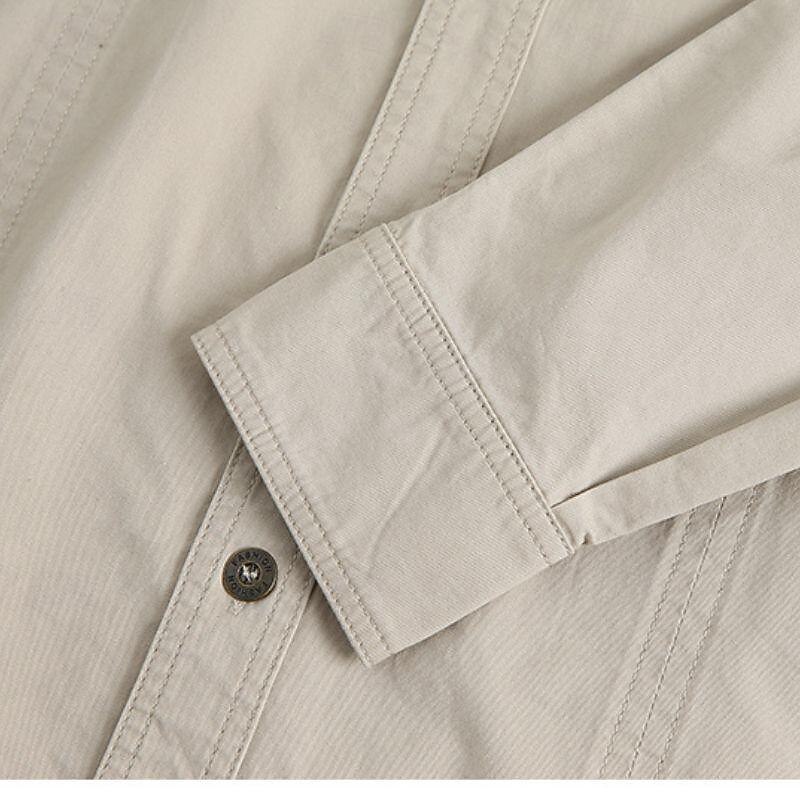 Men's Workwear Shirts Work Shirt Cargo Shirt Navy Blue khaki Light Grey Army Green Long Sleeve Plain Turndown Vacation Street Front Pocket Clothing Apparel Cotton Fashion Casual Comfortable 11