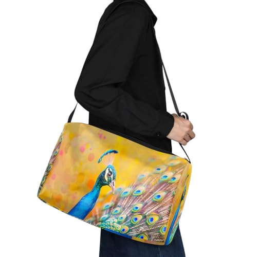 Leather Travel Duffle Bag for Women Men, Beautiful Peacock Small Sports Gym Bag Weekender Overnight Bags Underseat Carry on Luggage Bags for Airplanes, Personal Item Travel Bag,A-014 7