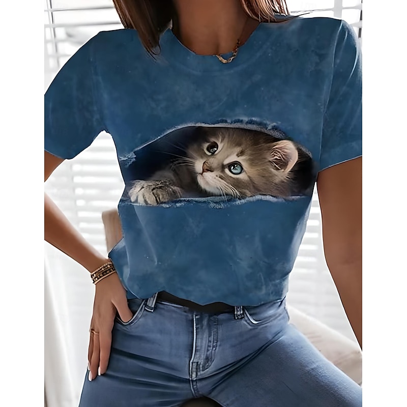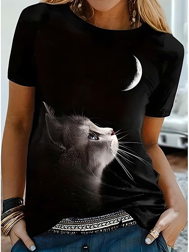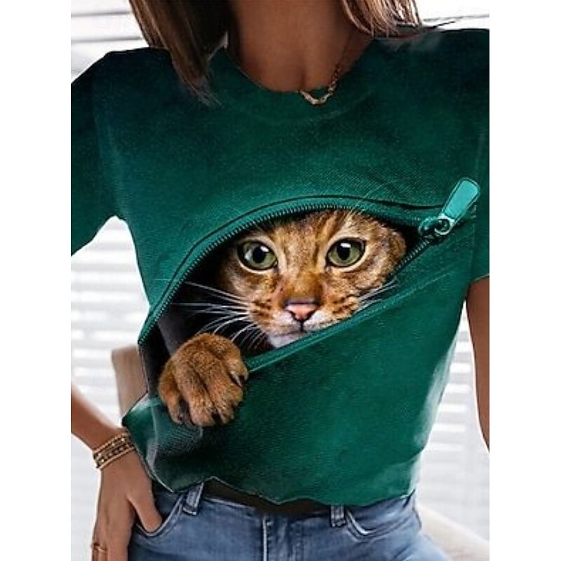$21.99 - Women's T Shirt Graphic Animal Cat Vintage Stylish Classic Short Sleeve Crew Neck Round Neck Regular Tops Daily Weekend Print Black White Blue Gold Green Summer Spring 2025. Shop for cheap Animals tee online? Buy at lightinthebox.com on sale today!