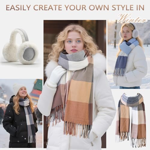 Scarf for Women - Winter Scarf for Women Fashion Cashmere Feel Plaid Scarfs, Pashmina Shawls and Wraps 4
