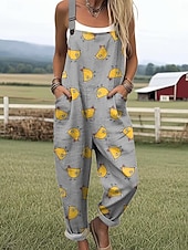 More information about Women's Dungarees Active Animal Sleeveless Sleeveless Wide Leg Pocket Buttons Vacation Street Loose Fit Light Green Green Gray Summer