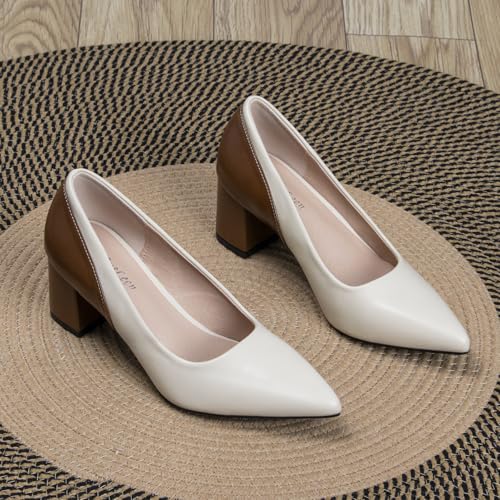 More information about Pointy Closed Toe Block Heels for Women Dress Shoes 2 Inch Low Heel Womens Black Beige Brown Splicing Chunky Pumps Comfortable Wedding Party Heels