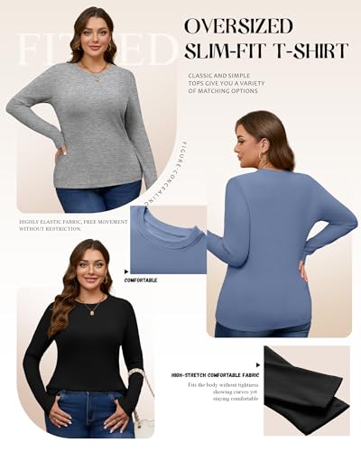 • Crew Neck and Slim Fit Design: women's plus size long sleeve top features a classic round neckline, which can fit the neck curve; Designed with a slim fit, it elegantly shapes your body while allowing for freedom of movement