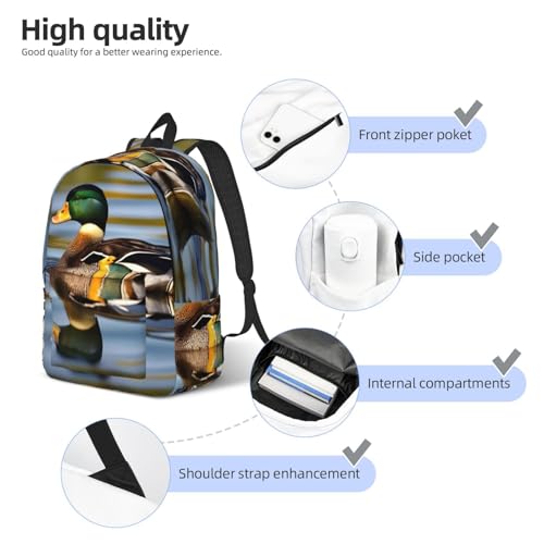mallard duck Printed backpack, travel bag, canvas shoulder bag, canvas casual lightweight backpack 4