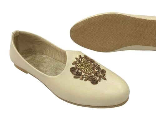 Men's Punjabi Jutti Cream Loafers Slip On Flats Shoes Ethnic Handmade Sherwani Mojari Indian Juti 1