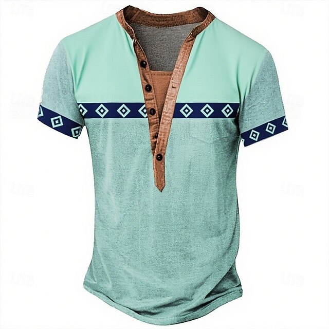 More information about Men's Tribal Ethnic T Shirt Henley Shirt Tee Short Sleeve Designer Basic Ethnic Outdoor Casual Daily Summer Light Green Khaki Henley Henley T-Shirt