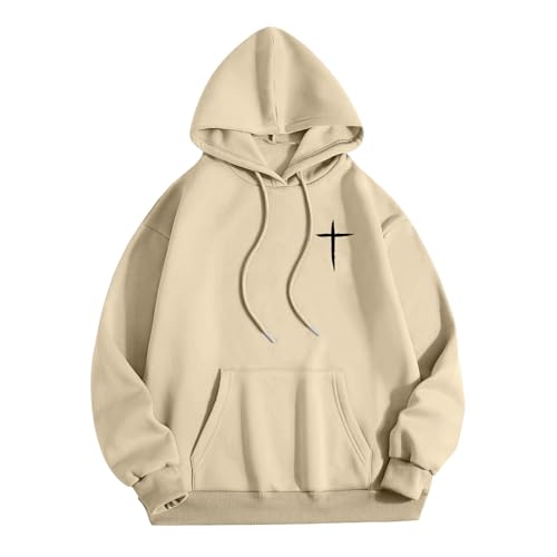 Christian Hoodies for Men | Oversized Christian Cross Pullover Hoodies - Trendy Pullover Top Fall Winter Clothes 2