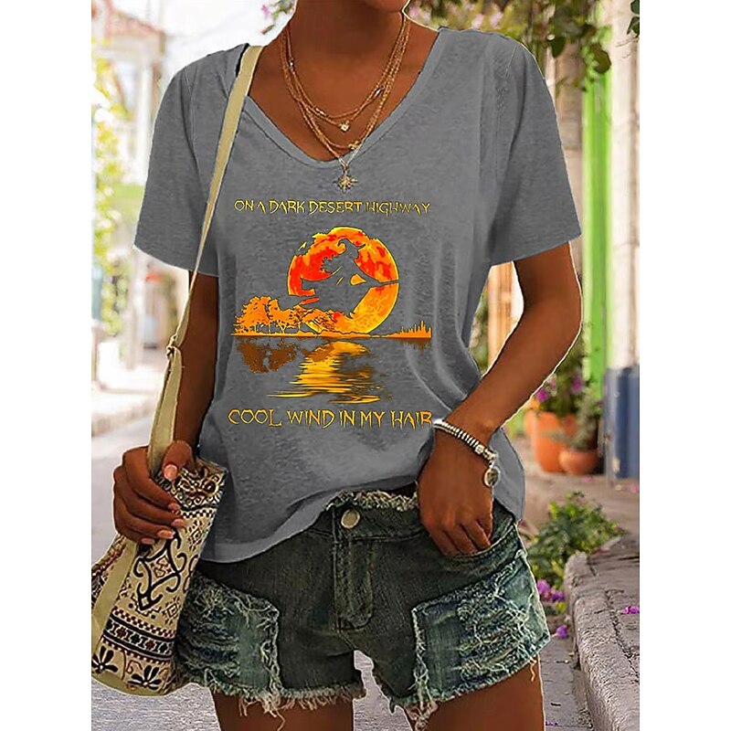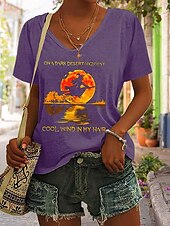 More information about Halloween Women's T shirt Witch Graphic Letter Vintage Stylish Classic Short Sleeve V Neck Regular Tops Daily Print Black Blue Purple Gray Summer Spring