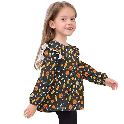 Candy Pumpkin Black Girls Shirts Cotton Long Sleeve Ruffle Toddler Tee Tops 1
