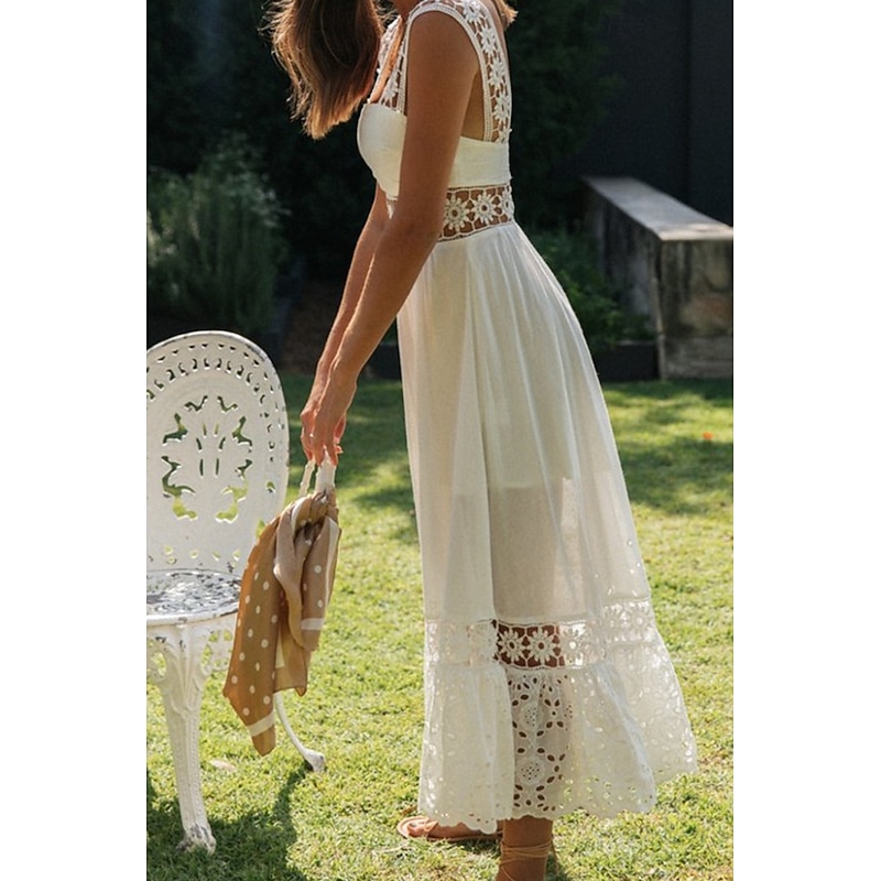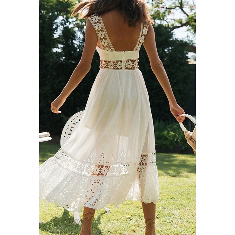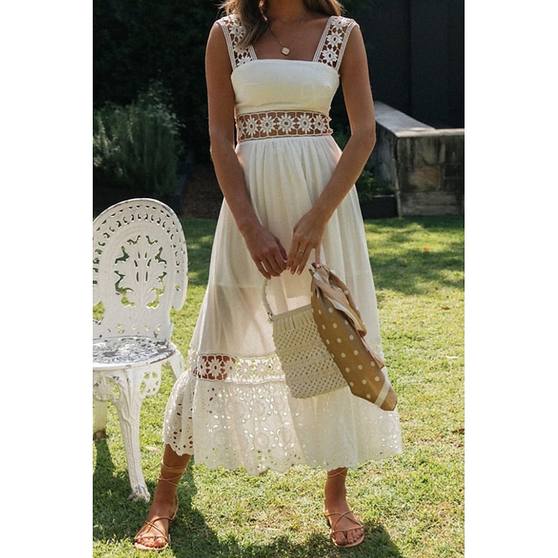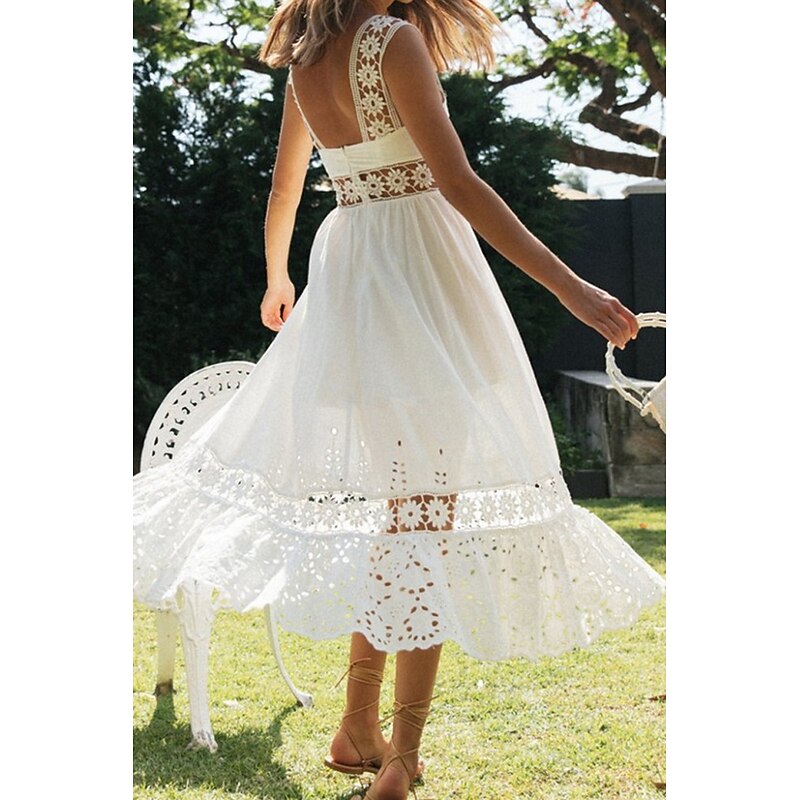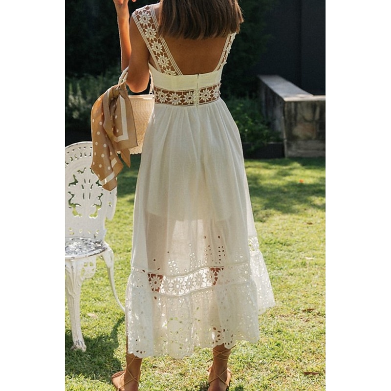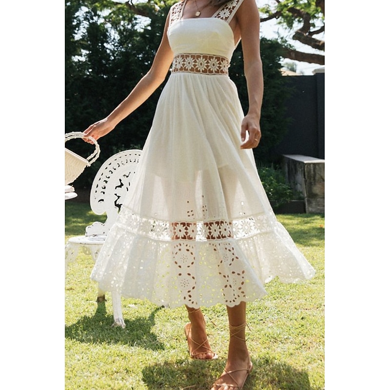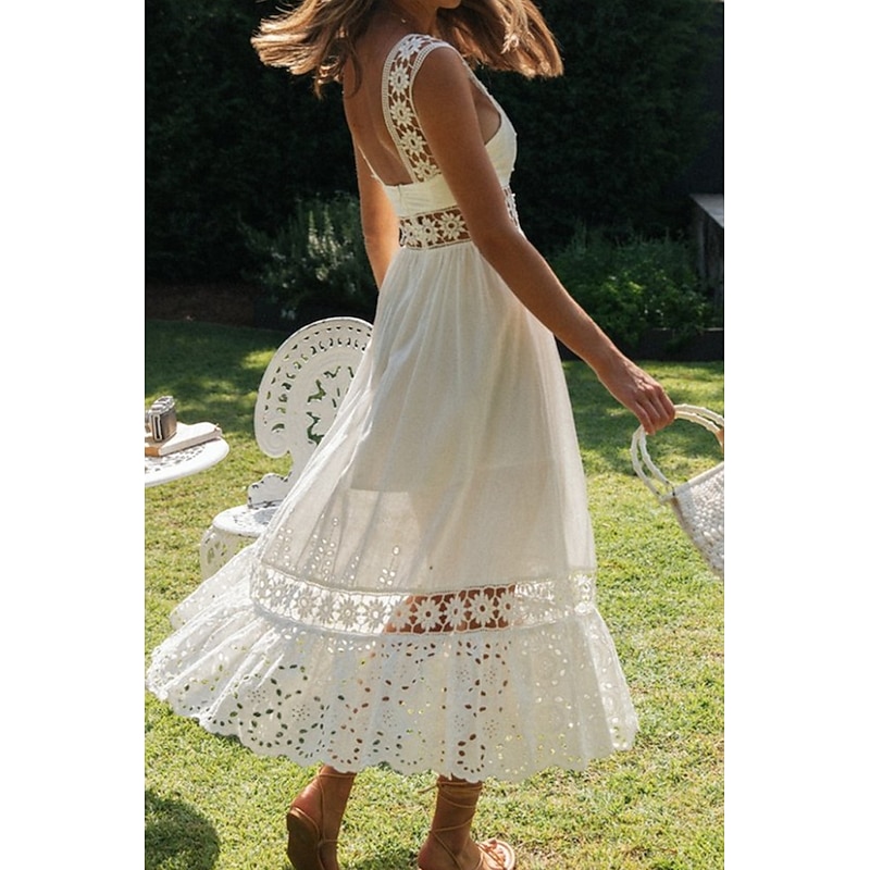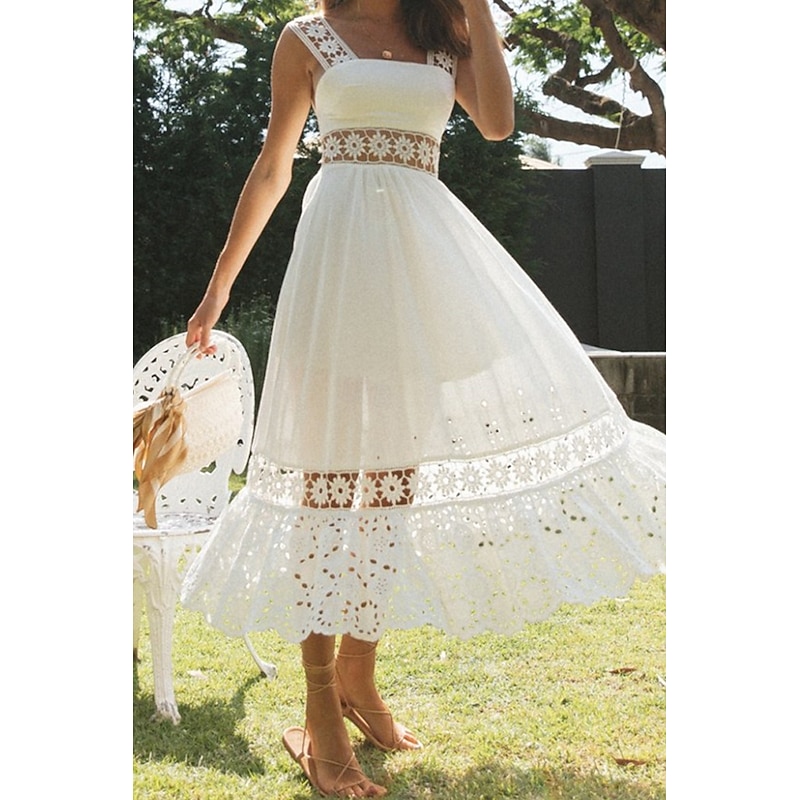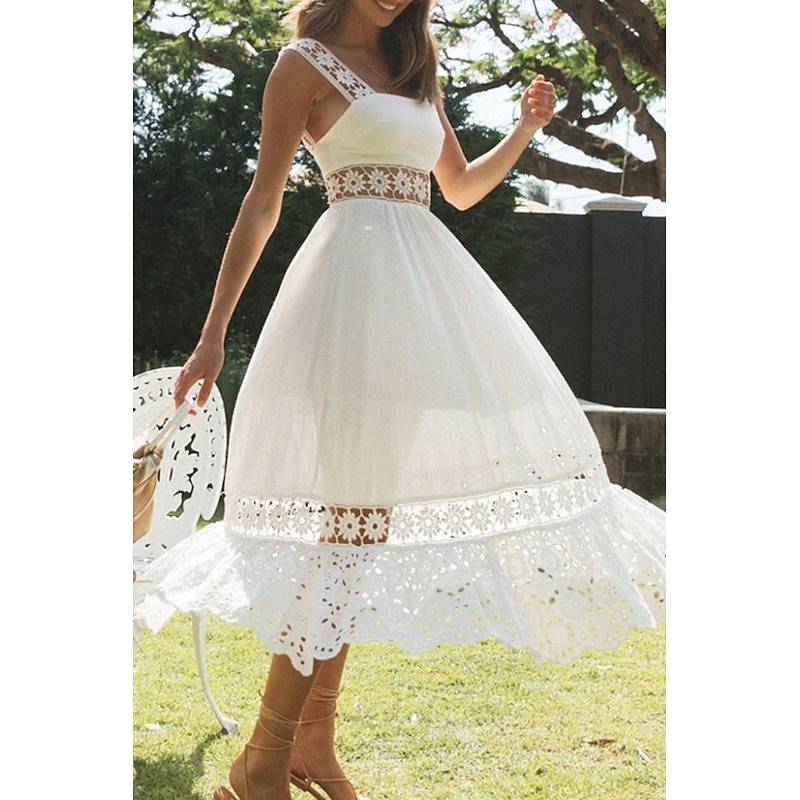 More information about Women's Midi Dress White Dress Graduation Dress Elegant Fashion Modern Vacation Birthday Going out Regular Fit Plain Sleeveless U Neck White Summer
