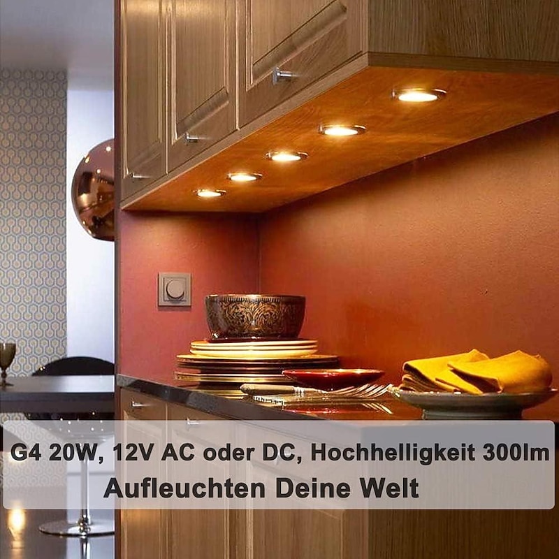 10pcs G4 Halogen Bi-Pin Light Bulbs 12V 20W Dimmable 3000K Warm White for Under Cabinet Puck Light Chandeliers Landscape Lighting 6