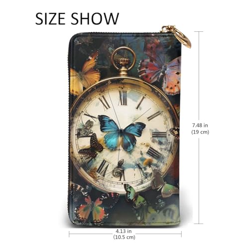 Butterfly Clocks Printed Long Wallet for Women Men Cute PU Leather Wallet with Coin Purse and Credit Card Holder 1
