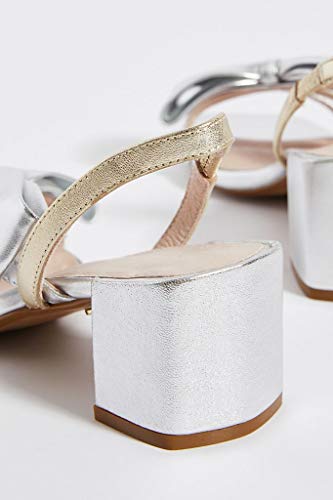 Cecelia New York Cosette Slingback Heels Silver Gold Open Block Heel Retro Pumps 5