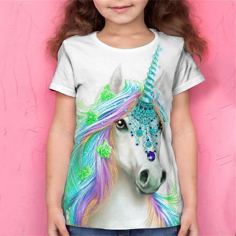 HOT ! Girls' 3D Animal Unicorn T shirt Short Sleeve 3D Print Summer Spring Active Fashion Cute Kids 3-12 Years Outdoor Daily Regular Fit