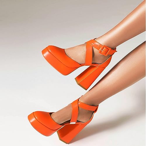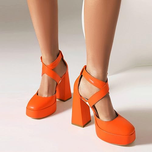 • Platform chunky heels with closed round toe, comfortable block high heeled show good figure of body and produce the pressure of calf. Ankle straps allow you to easily adjust your laces.