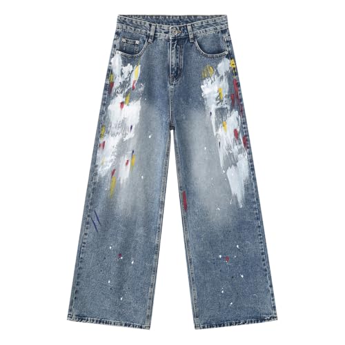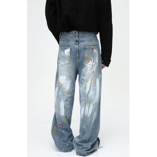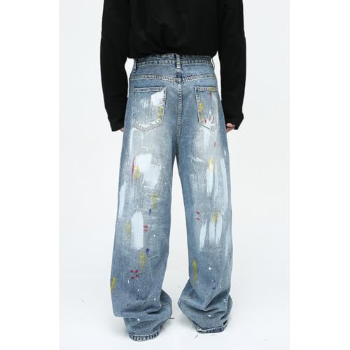 More information about XYGJZ Men Wide Leg Paint Splatter Jeans Baggy Loose Hip Pop Denim Pants
