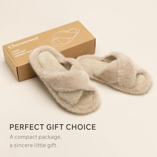 HOT ! Chantomoo Womens Slippers Memory Foam Fuzzy Cross Band Faux Fur Slippers for Women Gift