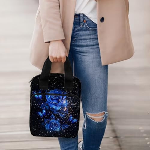 HOT ! Xoenoiee Blue Rose Butterfly Bible Cover Tote Bible Bag Bible Case with Handle and Zippered Women Bible Bag Portable Bible Carrying Case