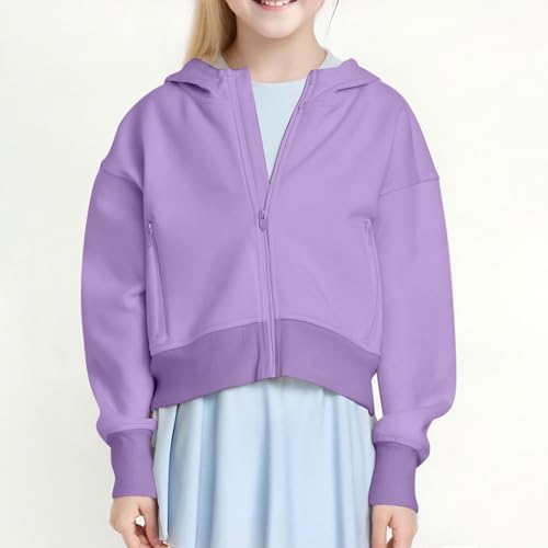 Girls Full Zipper Up Hoodies Gym Workout Sports Lightweight Solid Lounge Sweatshirt Hooded with Pockets 5