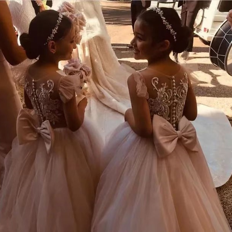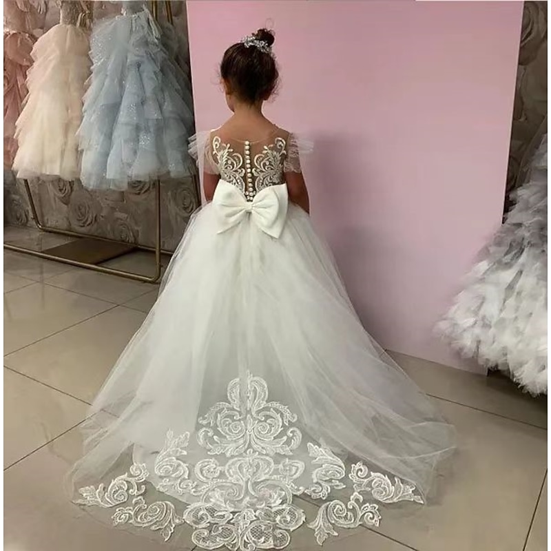 More information about Flower Girl Dress Girls' First Communion Dress Party Dress Performance Wedding Party Princess Sweet Mesh Solid Color Sleeveless Crew Neck White Champagne 2-12 Years