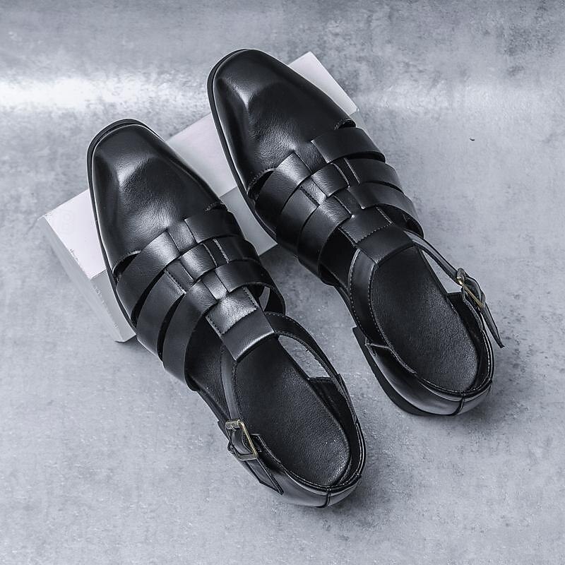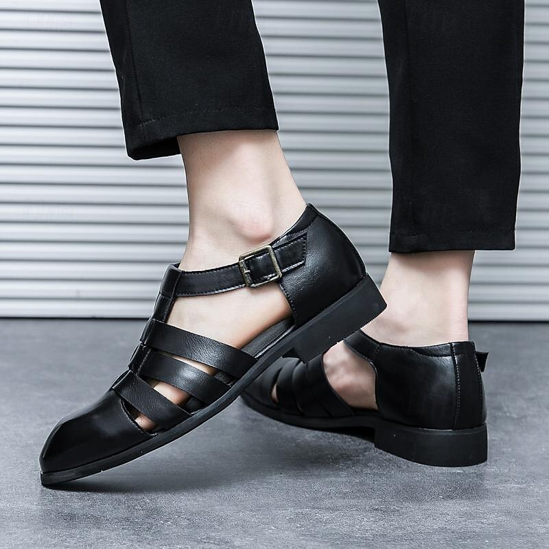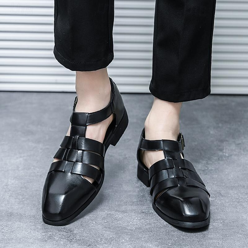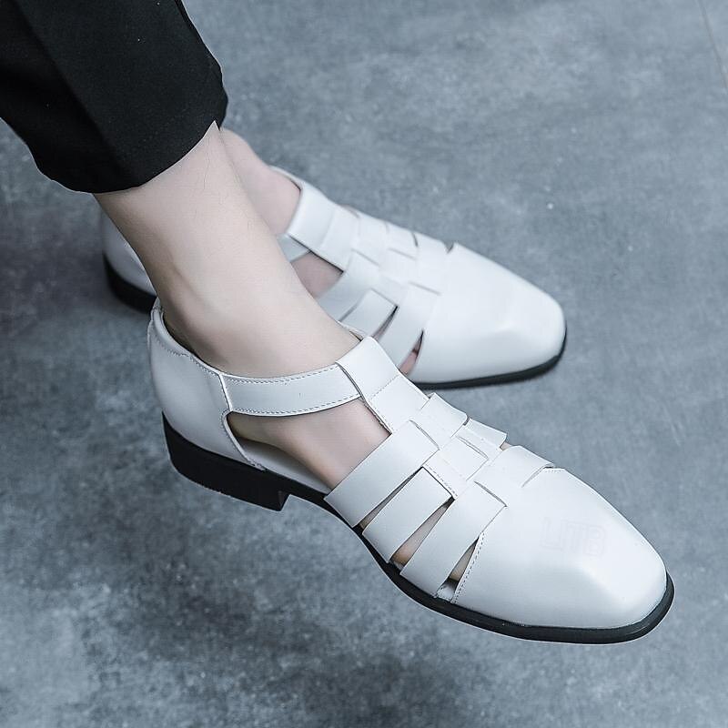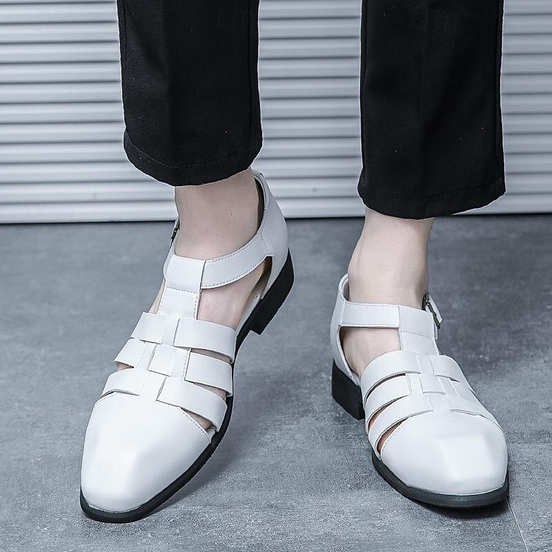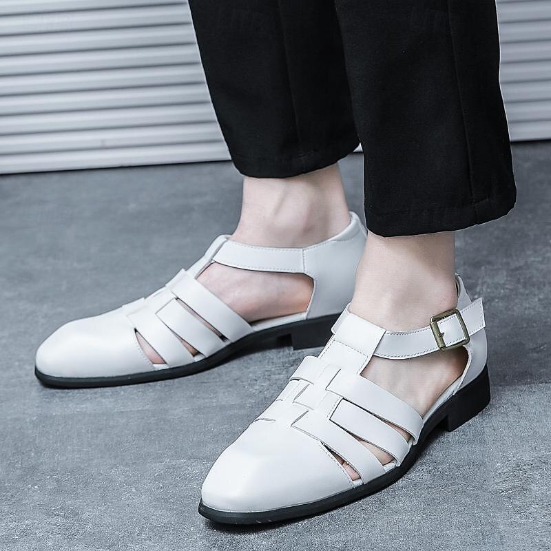 Men's Leather Sandals Retro Fishermen Sandals Black Summer Sandals Walking Business Casual Office & Career Comfortable Buckle White Spring Fall 31