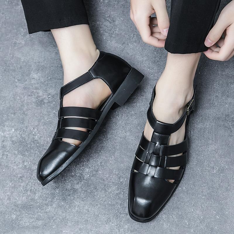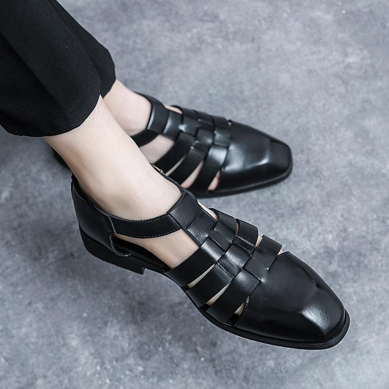 Highlights [Fabric] : Crafted from high-quality leather, these men's sandals boast a durable and comfortable design, perfect for long-lasting wear throughout spring and fall. [Fit] : Featuring a retro fishermen style, these sandals present a classic round toe and a casual yet business-appropriate silhouette that makes them suitable for a variety of occasions. [Design Highlights] : The sandals come with a secure buckle closure, ensuring a snug fit that remains comfortable during extended periods of wear. The unique splicing embellishment adds an understated elegance, while the sturdy rubber outsole provides excellent grip and stability across different surfaces. [Occasions] : Ideal for both office and casual settings, these versatile sandals are perfect for walking, business casual events, and career-focused environments. Their timeless appeal allows them to enhance any outfit, from laid-back weekends to professional ensembles. [Size Notice] : Available in a variety of sizes ranging from US6-6.5/EU38 to US11/EU44. We recommend selecting your usual size for the best fit.