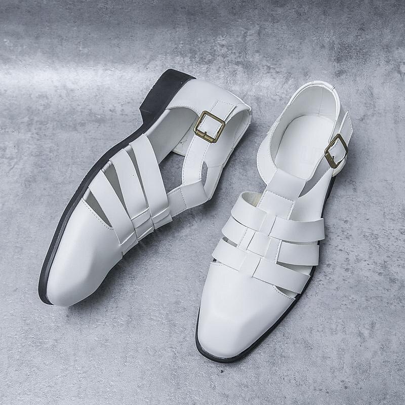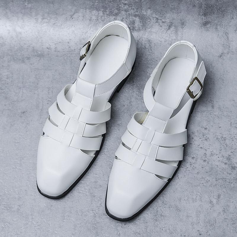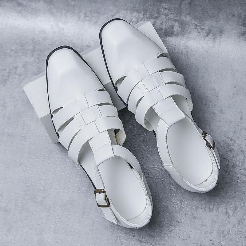 Men's Leather Sandals Retro Fishermen Sandals Black Summer Sandals Walking Business Casual Office & Career Comfortable Buckle White Spring Fall 11