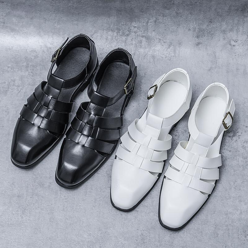 Men's Leather Sandals Retro Fishermen Sandals Black Summer Sandals Walking Business Casual Office & Career Comfortable Buckle White Spring Fall 22