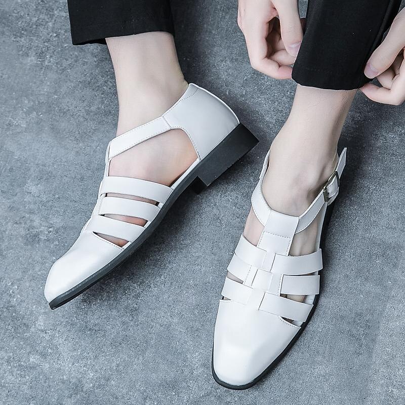 Men's Leather Sandals Retro Fishermen Sandals Black Summer Sandals Walking Business Casual Office & Career Comfortable Buckle White Spring Fall 26