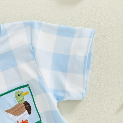 Infant Baby Boy Summer Outfit Short Sleeve Mallard Duck Embroidery Checkered Bubble Romper Newborn Hunting clothes 5