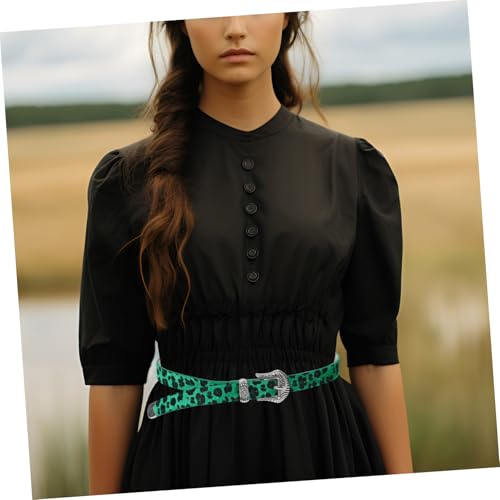 Women Vintage Leopard Print Wide Waist Belt with Western Buckle for Casual Wear and Dresses Elegant Retro Style Green 6