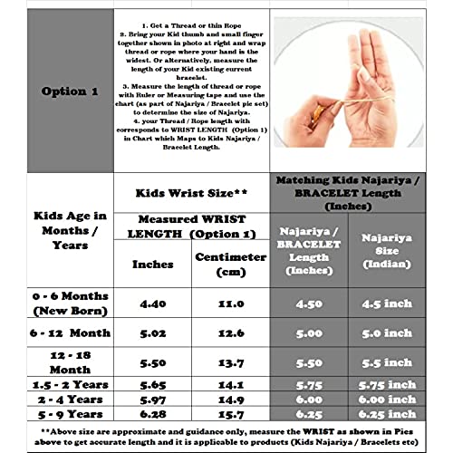 • Dimensions: 1 pair 5.0-inch najariya weight is approximately 7.0-8.0 grams, length =5.0 inch with 0.5 inch extension, age =6-12 months