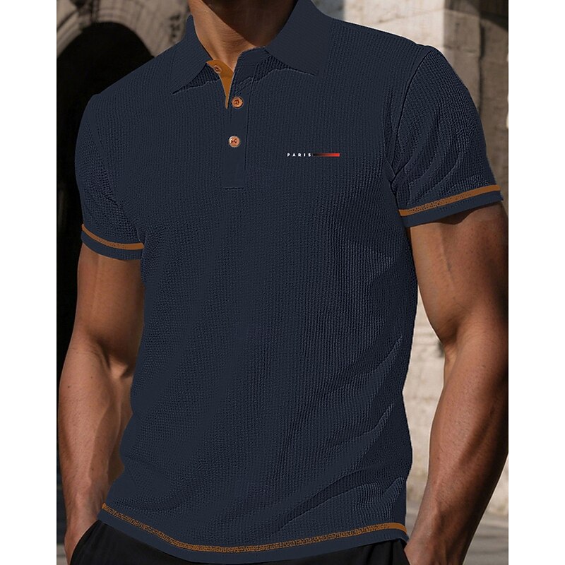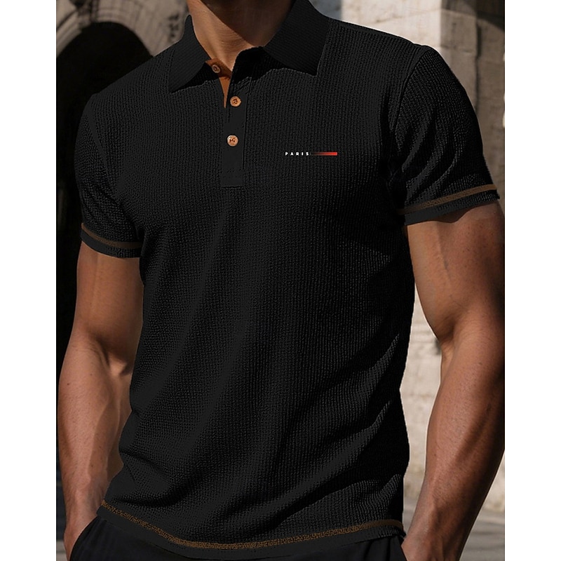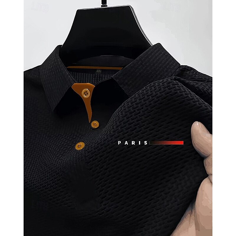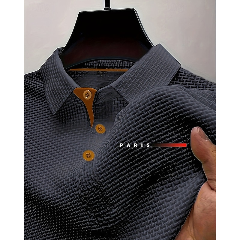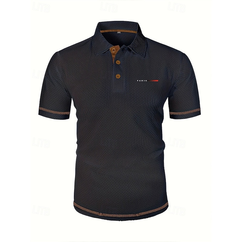 More information about Men's Golf Shirt Golf Polos Shirts Work Casual Lapel Short Sleeve Basic Modern Plain Jacquard Buttons Summer Spring Regular Fit Black White Navy Blue Blue Dark Gray Light Blue Golf Shirt