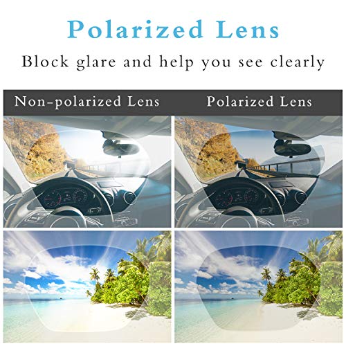 • Polarized Sunglasses: Polarized lenses reduce glares and reflections, help you see clearer when driving sunlight and drive safer.