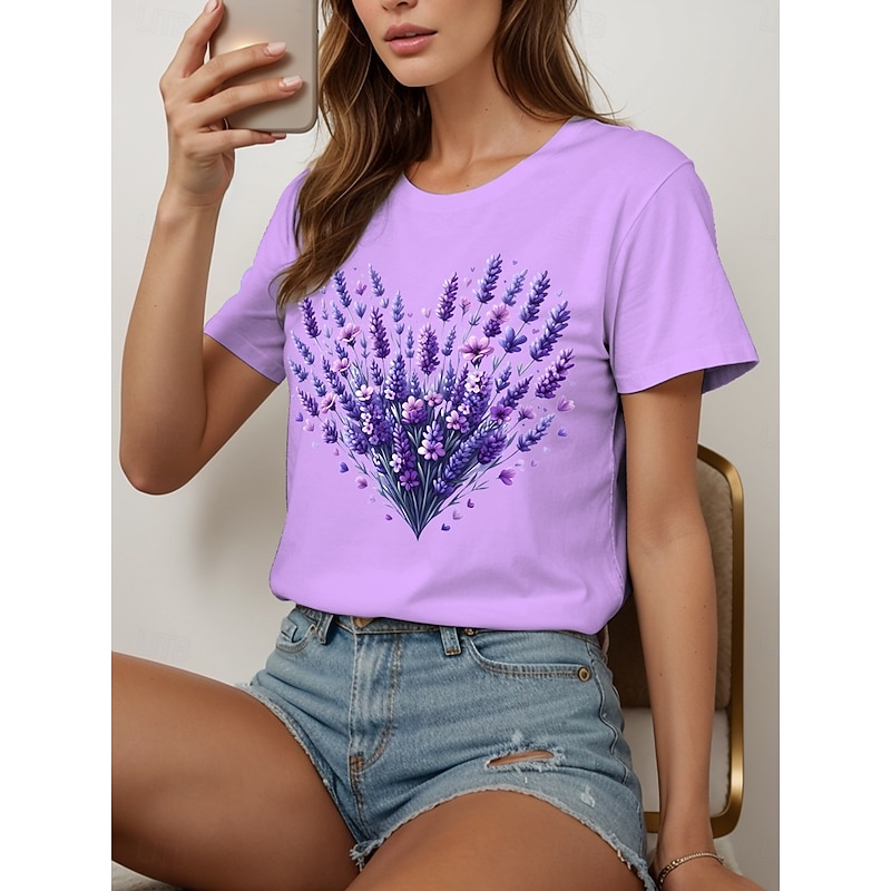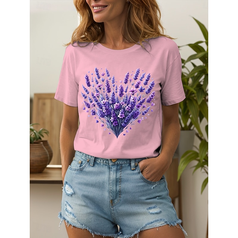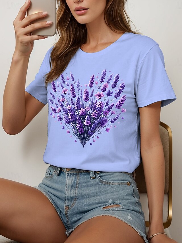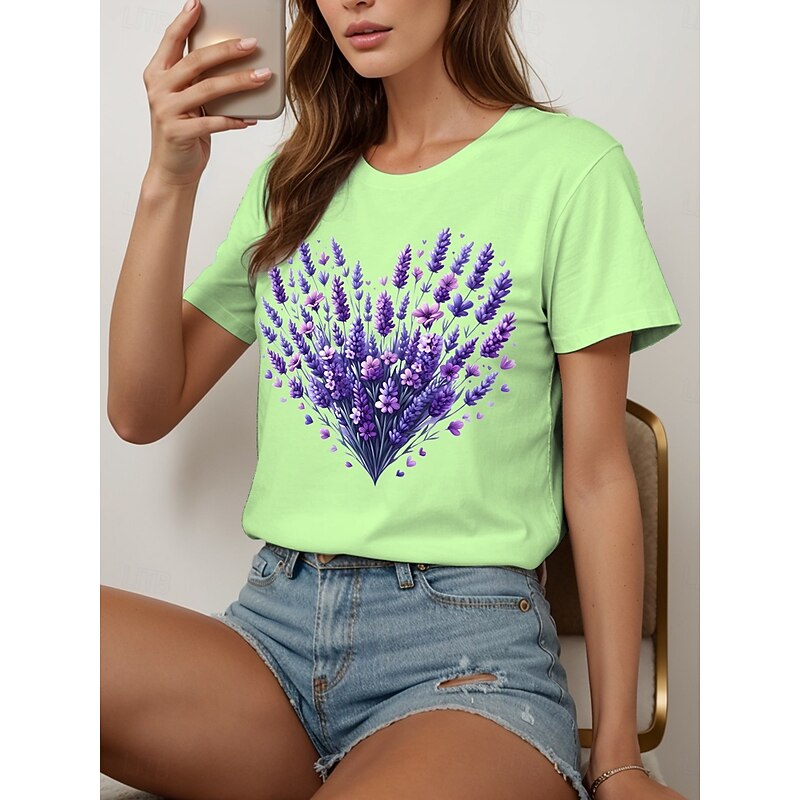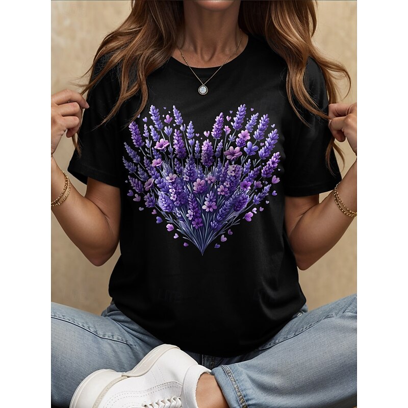 Women's T Shirt Heart Floral Graphic Vintage Stylish Classic Short Sleeve Crew Neck Round Neck Regular Tops Daily Going out Weekend Print Black White Yellow Pink Blue Summer Spring Fall 7