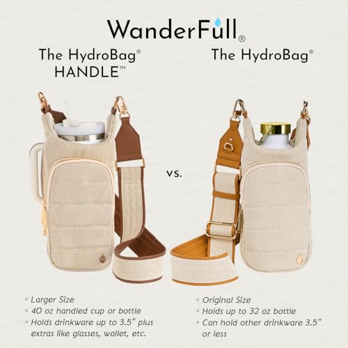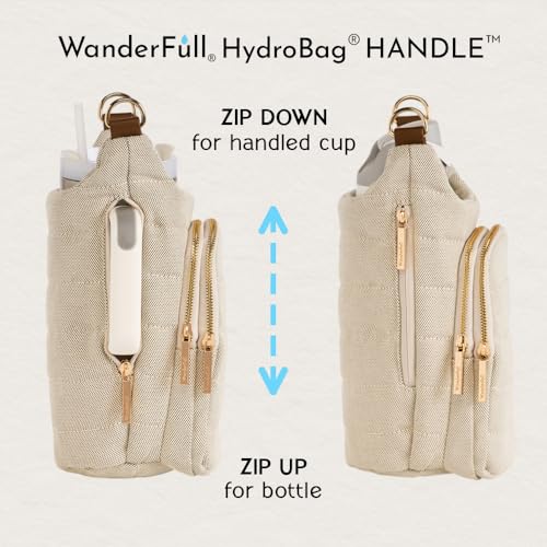 HOT ! WanderFull® Original HydroBag® HANDLE™ Zipper Slot for Handle, Hands-Free Crossbody Water Bottle Holder & Tumbler Accessories